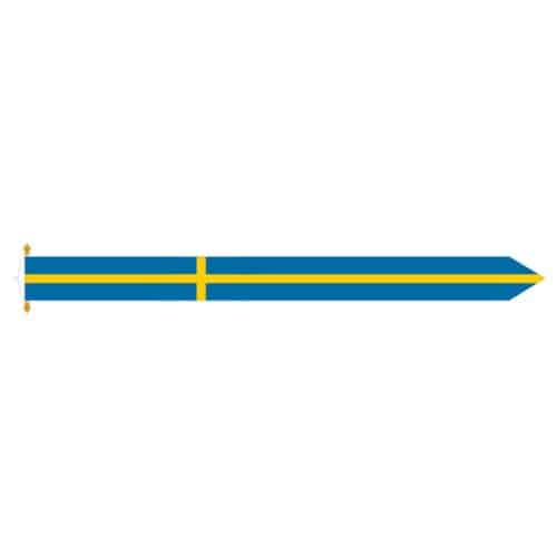 Wimpel van de Zweden. Gemaakt van Glanspolyester 115 gr/2, en rondom dubbelnaalds gezoomd. Keuze uit standaard-, fluister of zonder stokje.